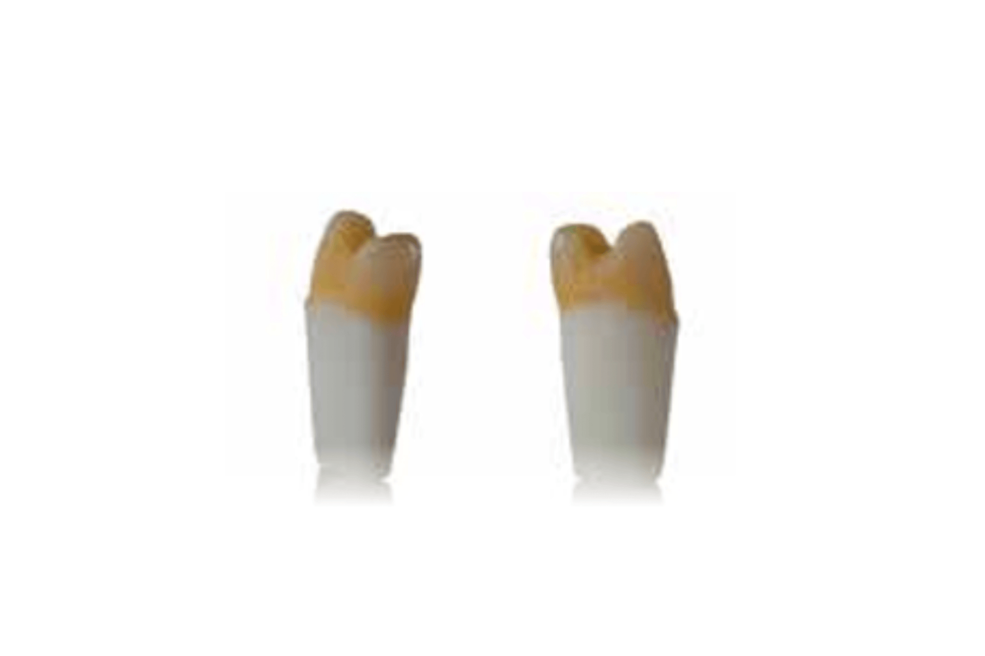 With partial veneer control and vestibular chamfer preparation with isthmus. Pre-prepared premolar, which can be used for e.g. prosthetics, composite or CAD/CAM courses.