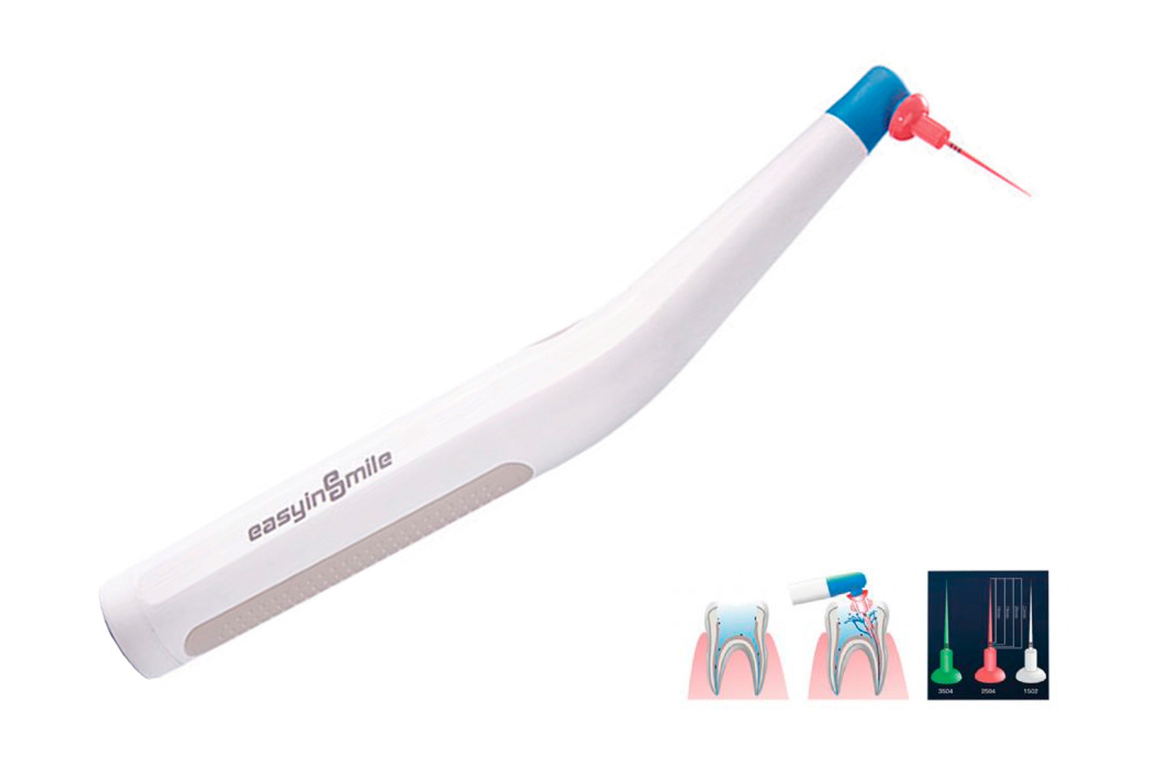 It is recognized that activation with ultrasound as a supplement to root canal irrigation gives a significantly better result. We can now offer you a cordless handpiece and ultra flexible polymer tips in 3 different sizes and tapers. White #15/02. Red #25/04. Green #35/04. Easydo is also suitable for rinsing out calcium hydroxide residues after revision, and as a supplement for solving a broken file tip.