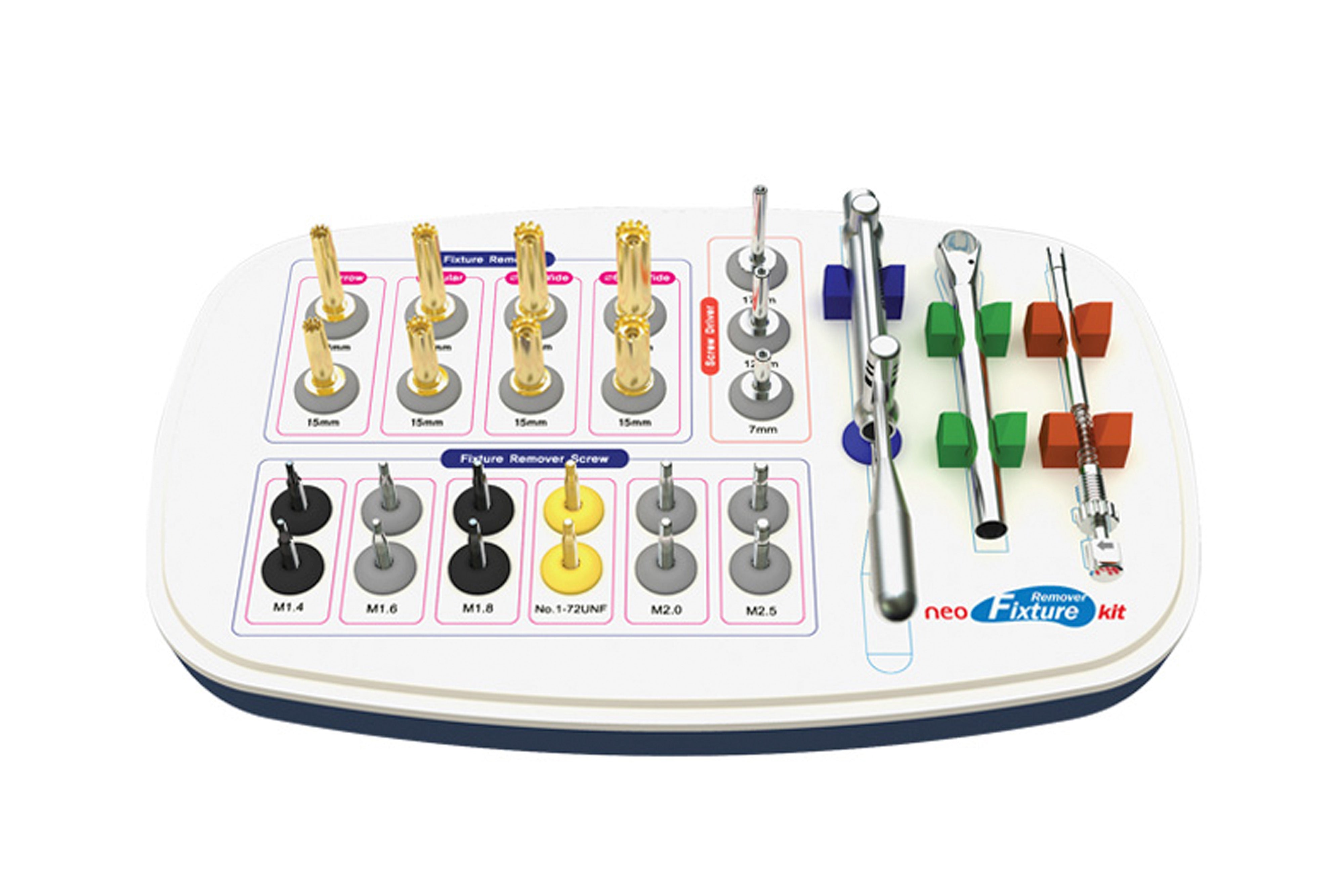 Consisting of torque wrench, 12 pcs. screws, two of each size. eight pcs. removers in two lengths, four sizes, keys for placement.