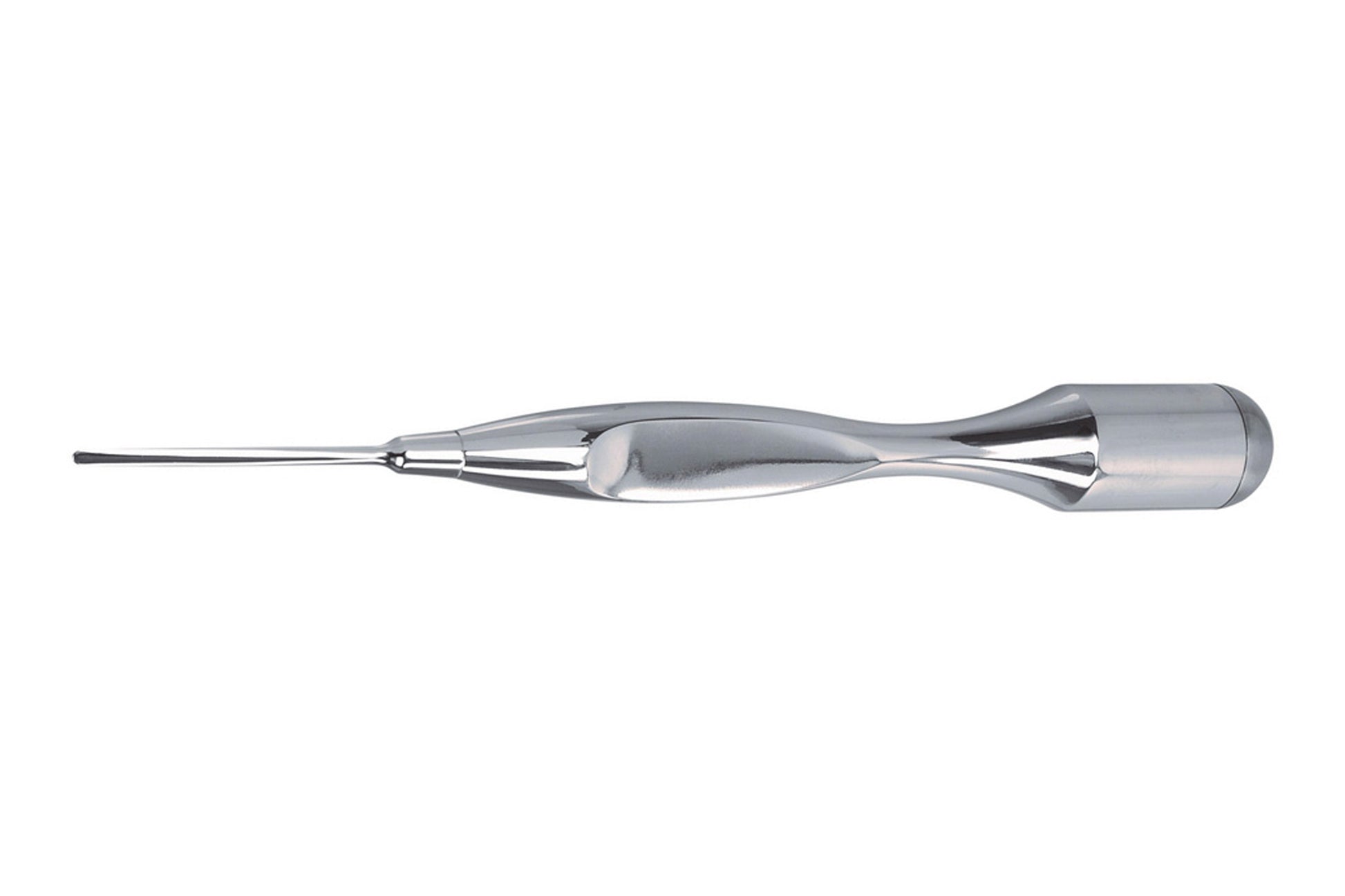 The super flexible tip allows you to build up strong pressure for luxation in the radial direction while following the contours of the tooth without bending or deforming the tip. Can be used as Periotome, elevator, luxator, three in one.