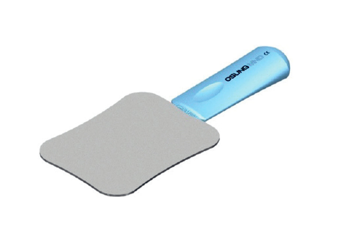 Double-sided photo mirror for diagnosis and clinical photography, with silicone handle.Measures: 100 x 77 mm.