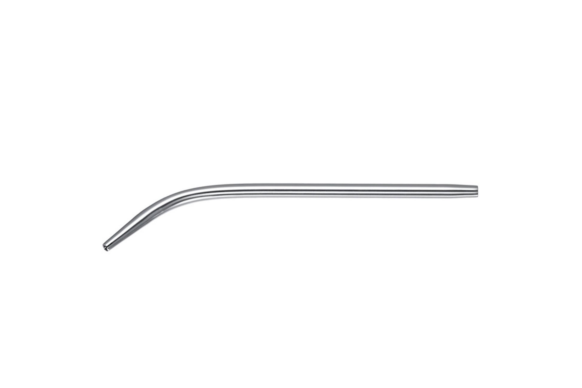Curved with a small hole in the front to avoid sticking to the mucous membrane