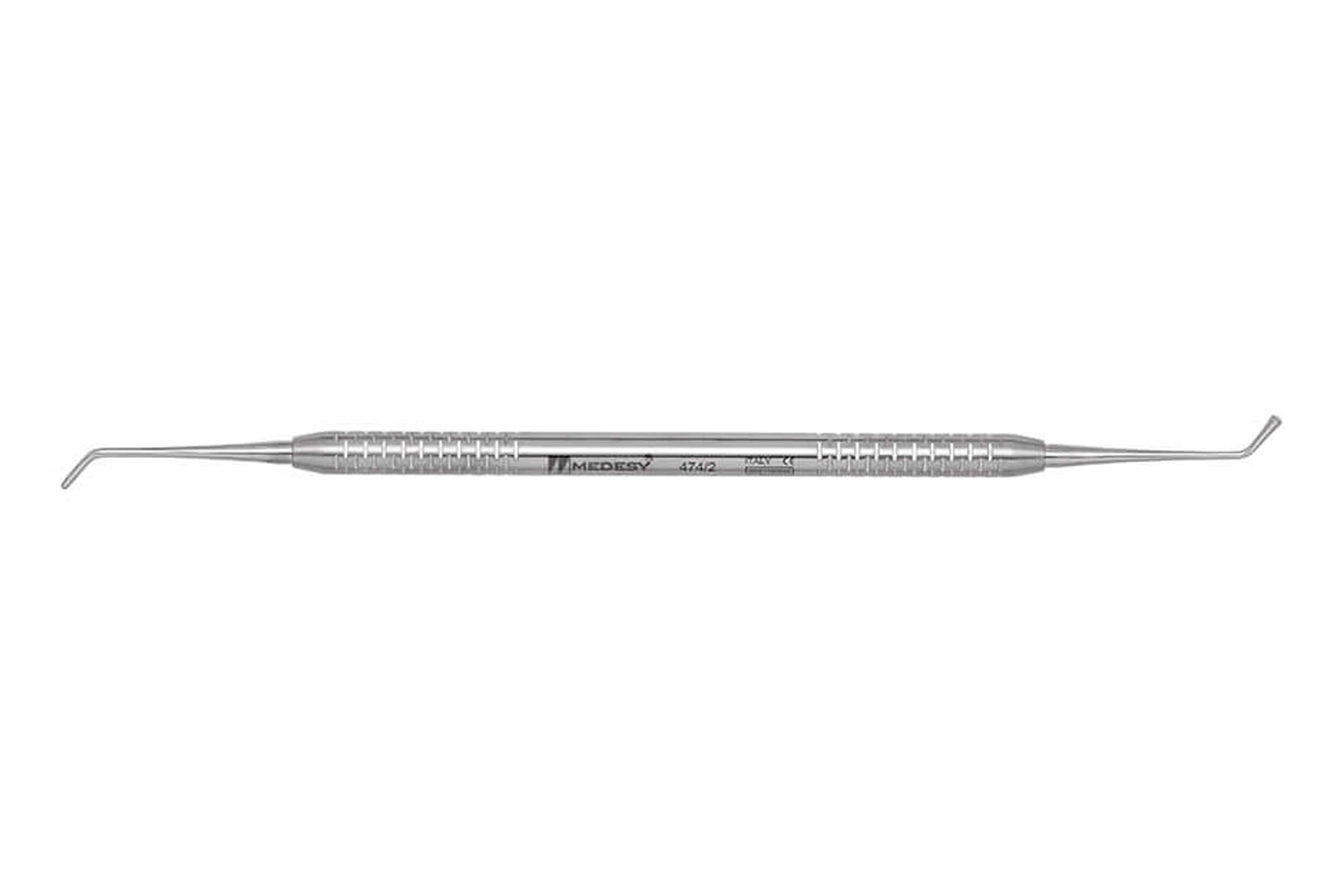 Filling instrument with 10 mm shaft. Working parts measure 1.3mm and 1.9mm.