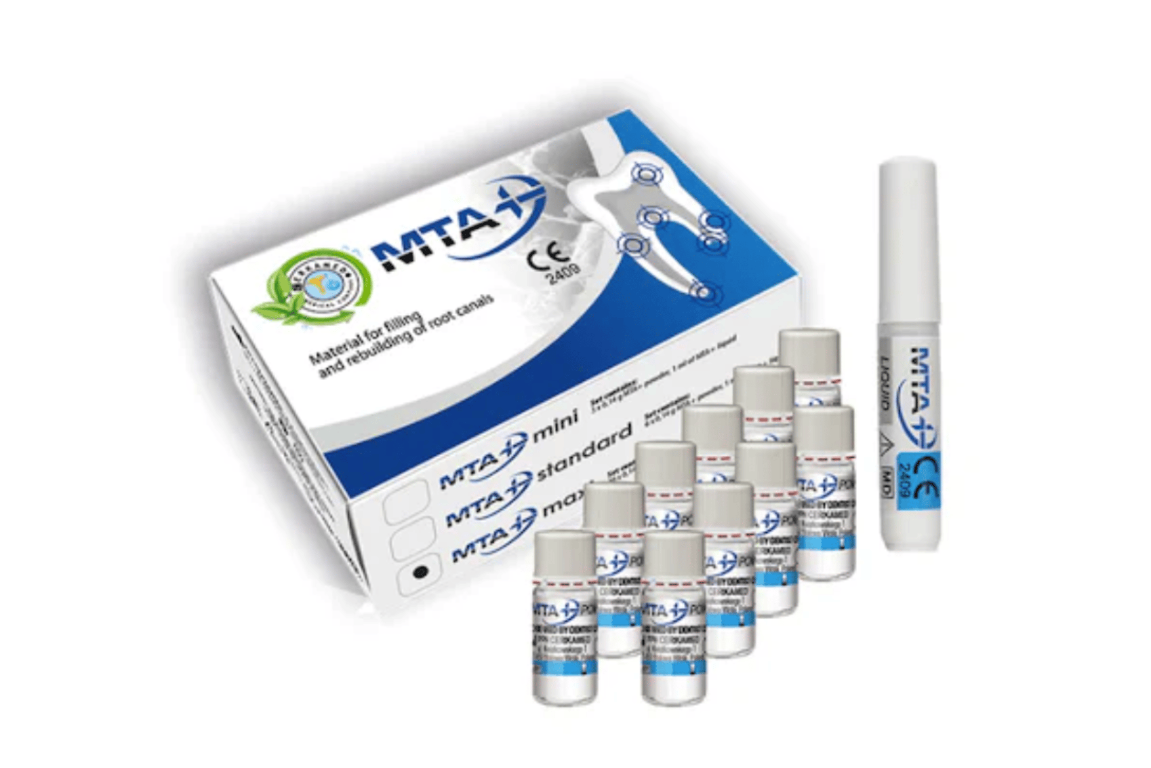 MTA (white) material for reconstruction and re-mineralization of root canals.