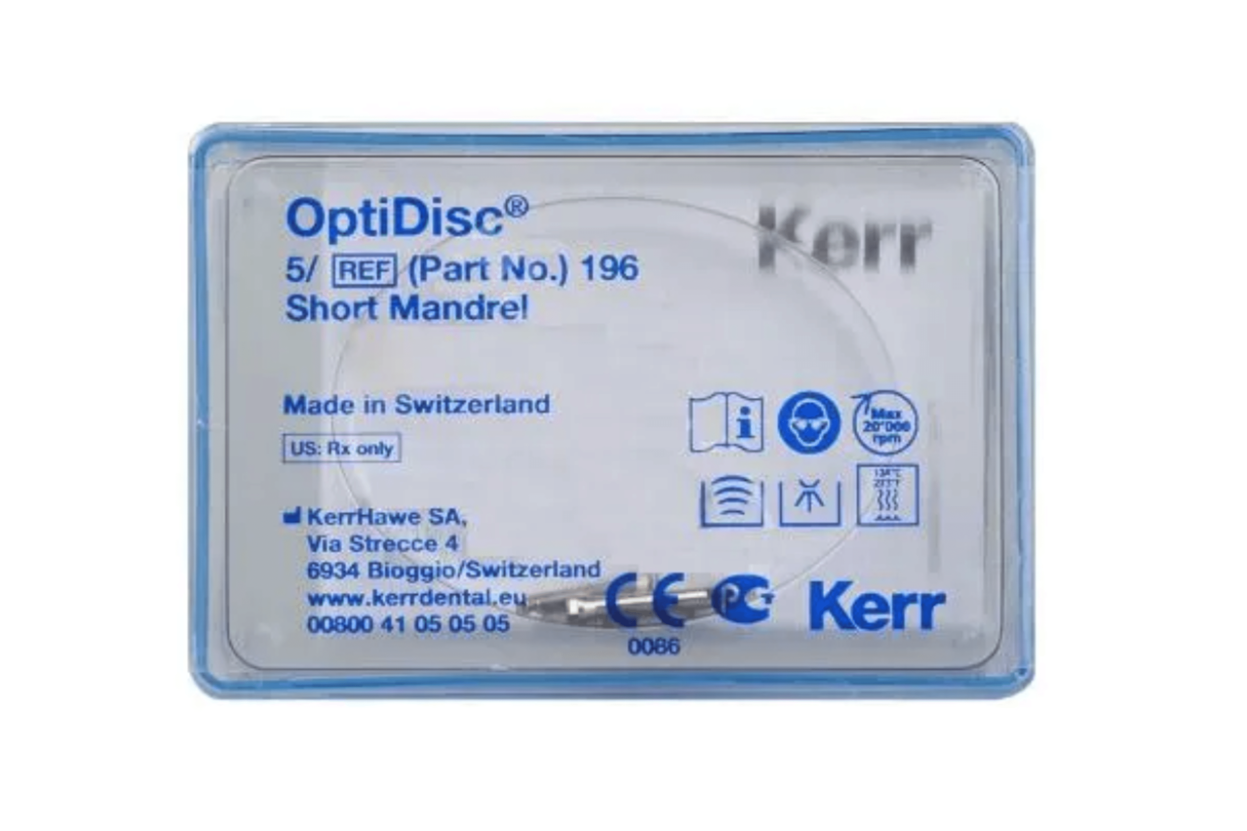 OptiDisc (like Soflex) is a top quality polishing and finishing system from Hawe Kerr. Can be used for composite, glass ionomers, amalgam and metal alloys.