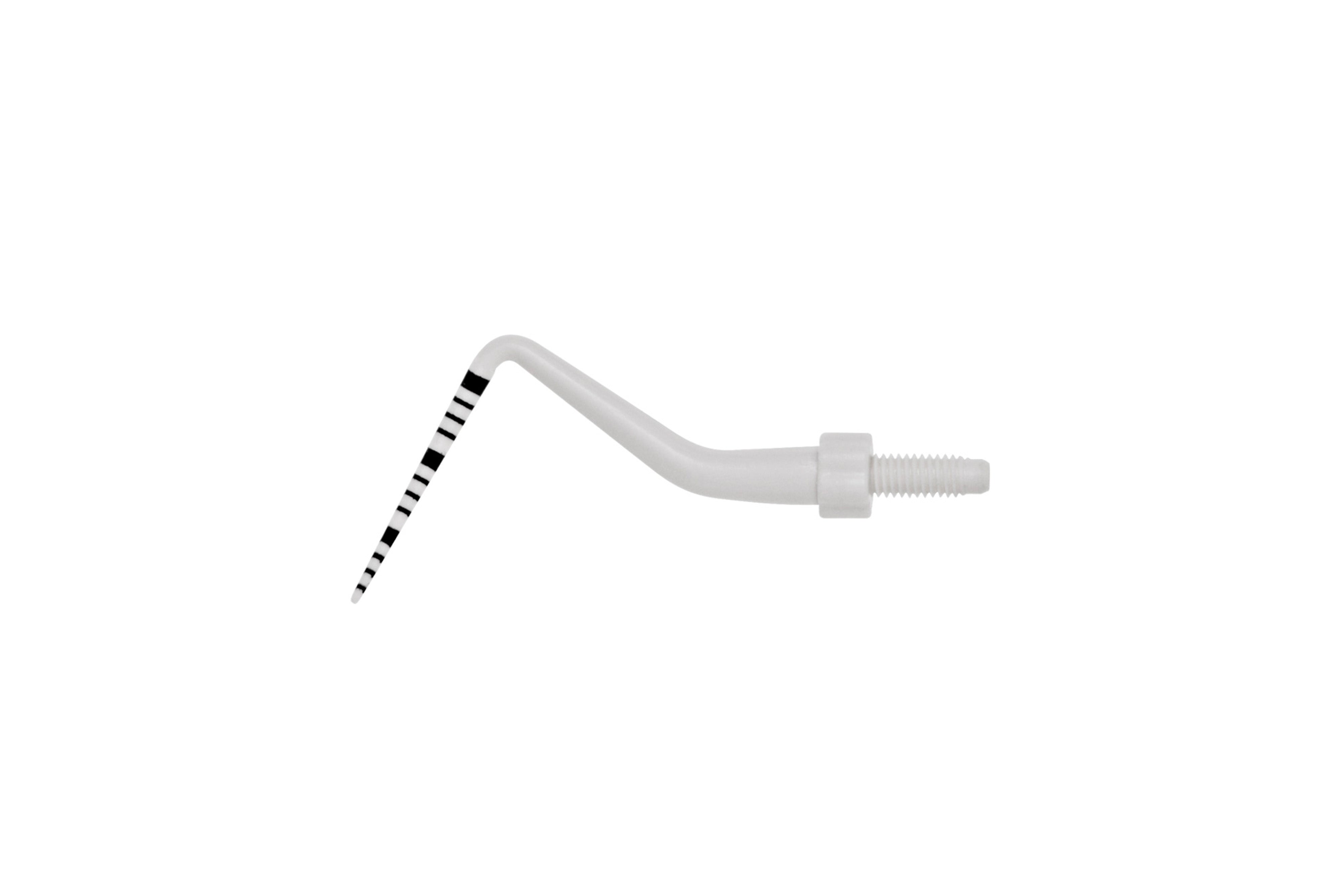 Plastic pocket depth gauge for mounting on shaft with millimeter thread.