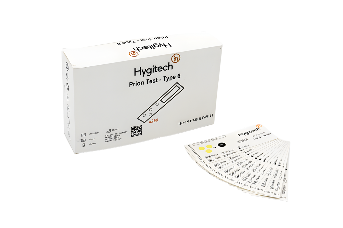 The Prior Test 6 test kit includes specialized test packs containing both biological and chemical indicators. These indicators monitor whether the necessary conditions for sterilization have been achieved.