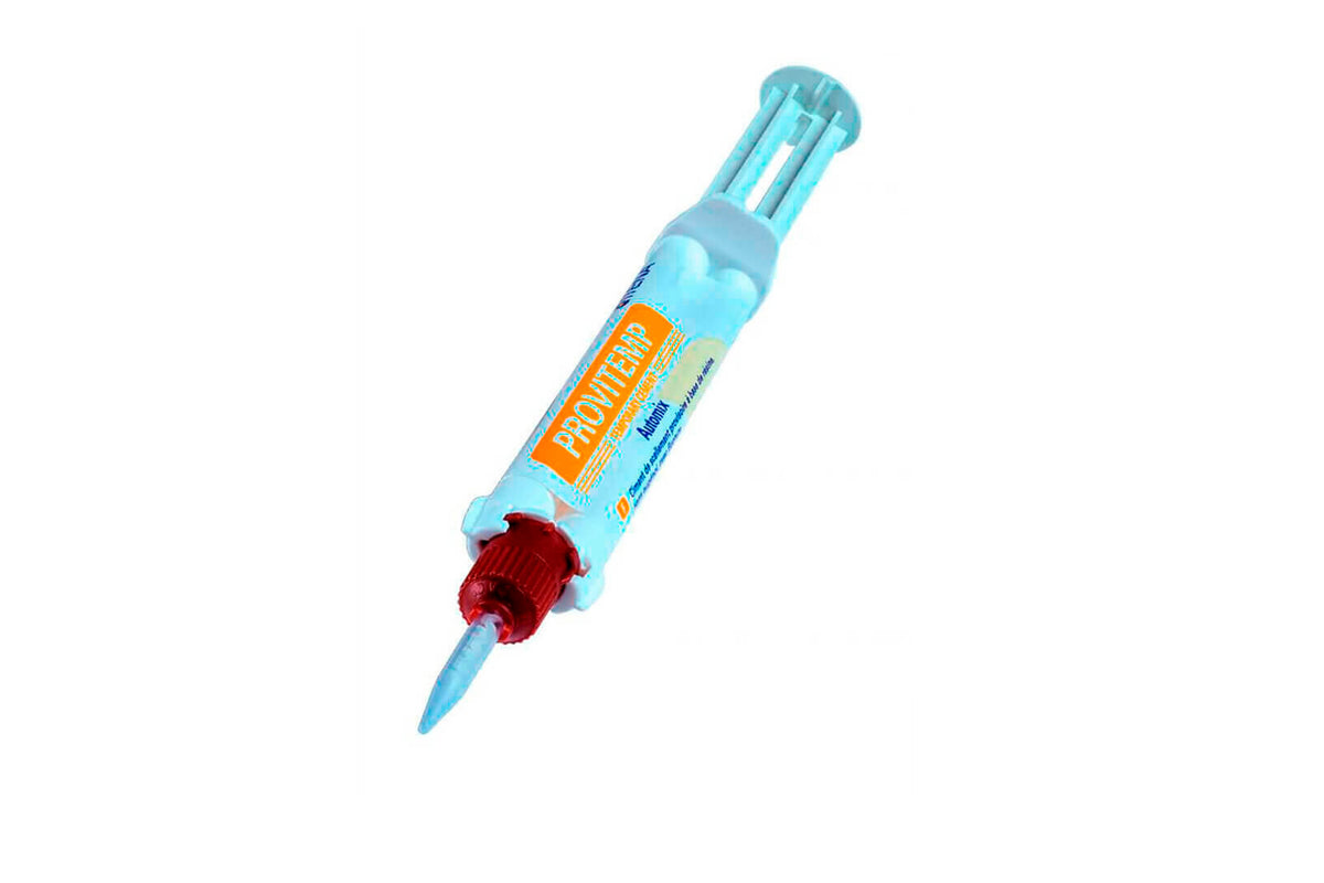 Provitemp is a type of acrylic-based filling material designed to match both the appearance and function of natural teeth. It is available in different colors that match the patient's natural tooth color, contributing to an aesthetic temporary restoration.