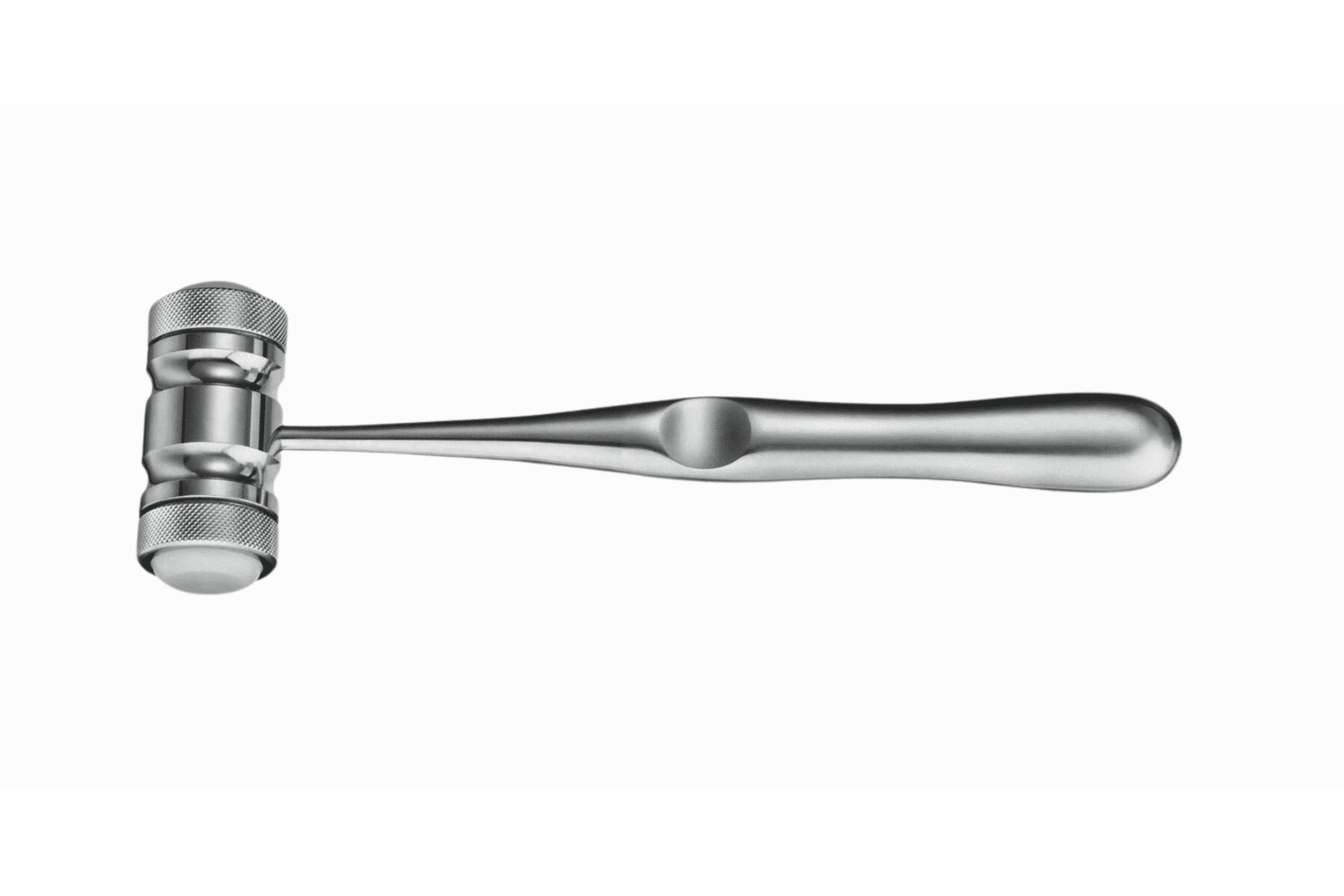 Extra heavy hammer with replaceable Teflon striking surfaces.