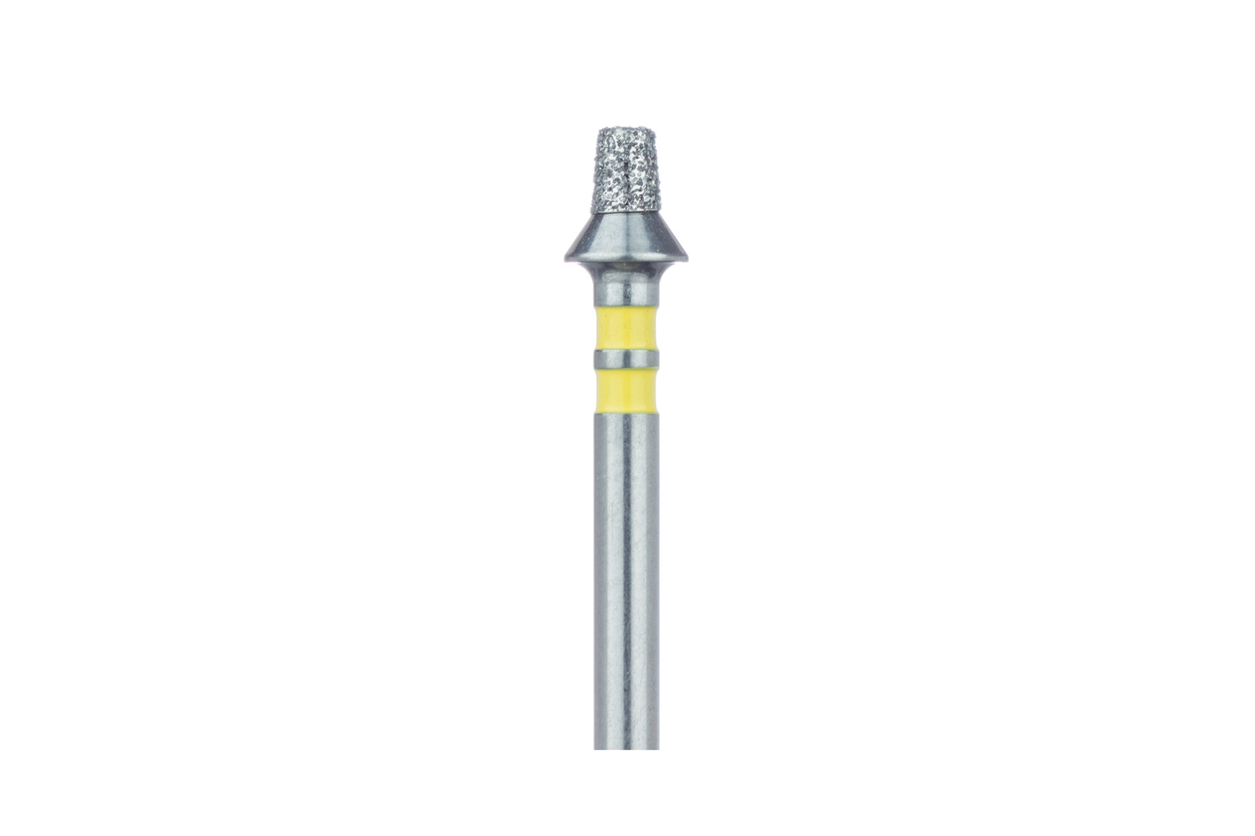 These German-engineered burs feature the same precision depth-stop collar as the standard 828 series but with an added 8° conical taper—ideal for vertical, controlled occlusal reduction in preparations for veneers, inlays, onlays, and ceramic restorations. Available in multiple depth options aligned with color codes, they combine consistent depth control with enhanced access and anatomical shaping.