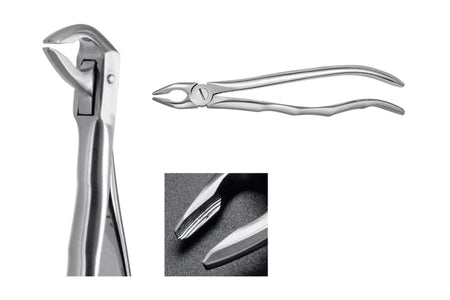 Better and safer grip on the tooth. The jaws are slimmer, more gracile with grooved relief and made of a particularly high quality steel with a satin finish.