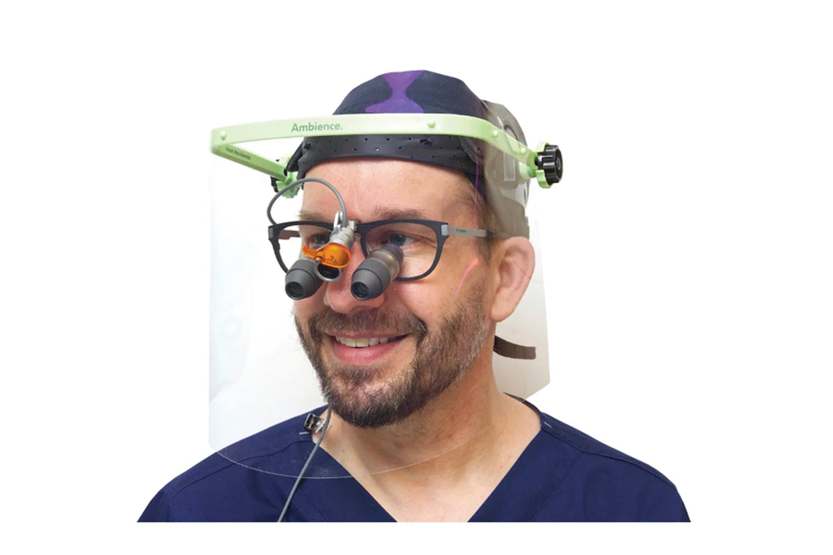 Very comfortable, can be used with glasses, loop glasses, mask and can adjust to several face sizes. The surface is coated with nano technology. Gives you a clear and shadow-free view. Can be wiped off as needed - use the disinfection wipe if necessary.
