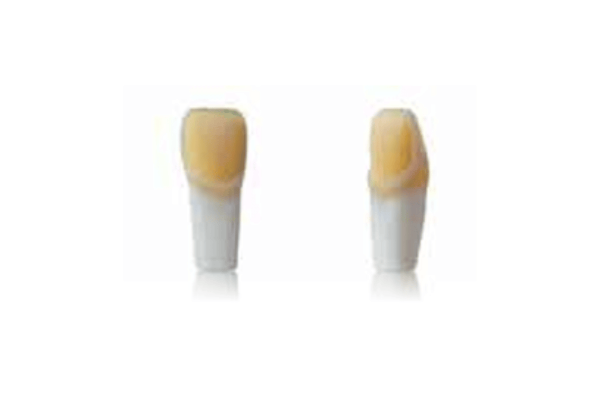 Mit epigingivaler Veneerkontrolle. Vorpräparierter Schneidezahn, der beispielsweise für Prothetik- und CAD/CAM-Kurse verwendet werden kann.