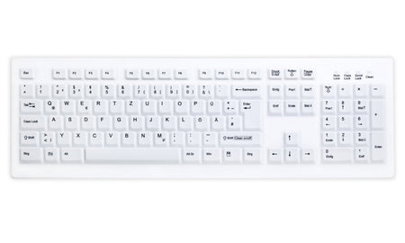 Hygienische Klinik- und mechanische Tastatur (mechanische Tasten) mit Silikonoberfläche, die leicht mit Desinfektionstüchern/-flüssigkeit gereinigt werden kann.