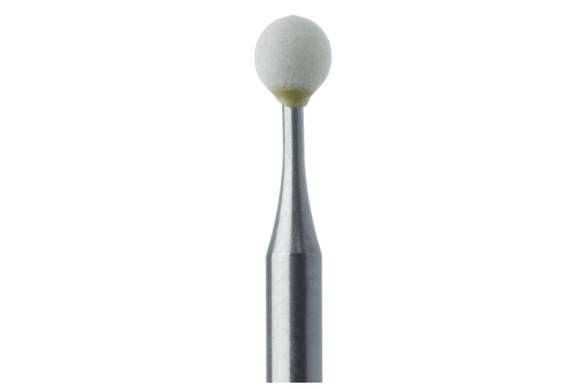 Weiße Arkansas-Schleifmittel extrafein, zum schonenden Anpassen und Polieren von Füllungsmaterial, Komposit, Glasionomeren und Keramik.