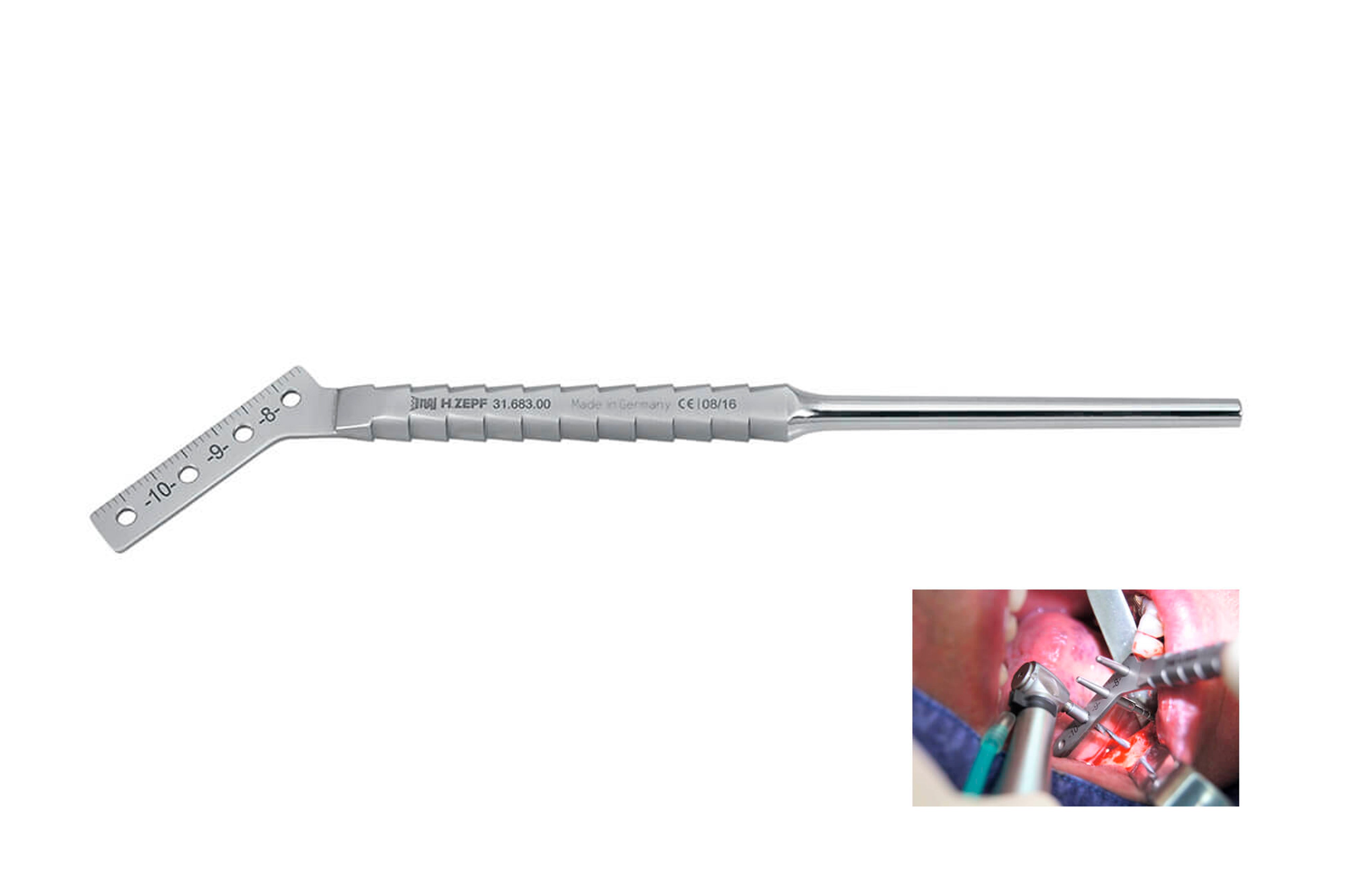 Einfaches Instrument zum Positionieren von Implantaten.