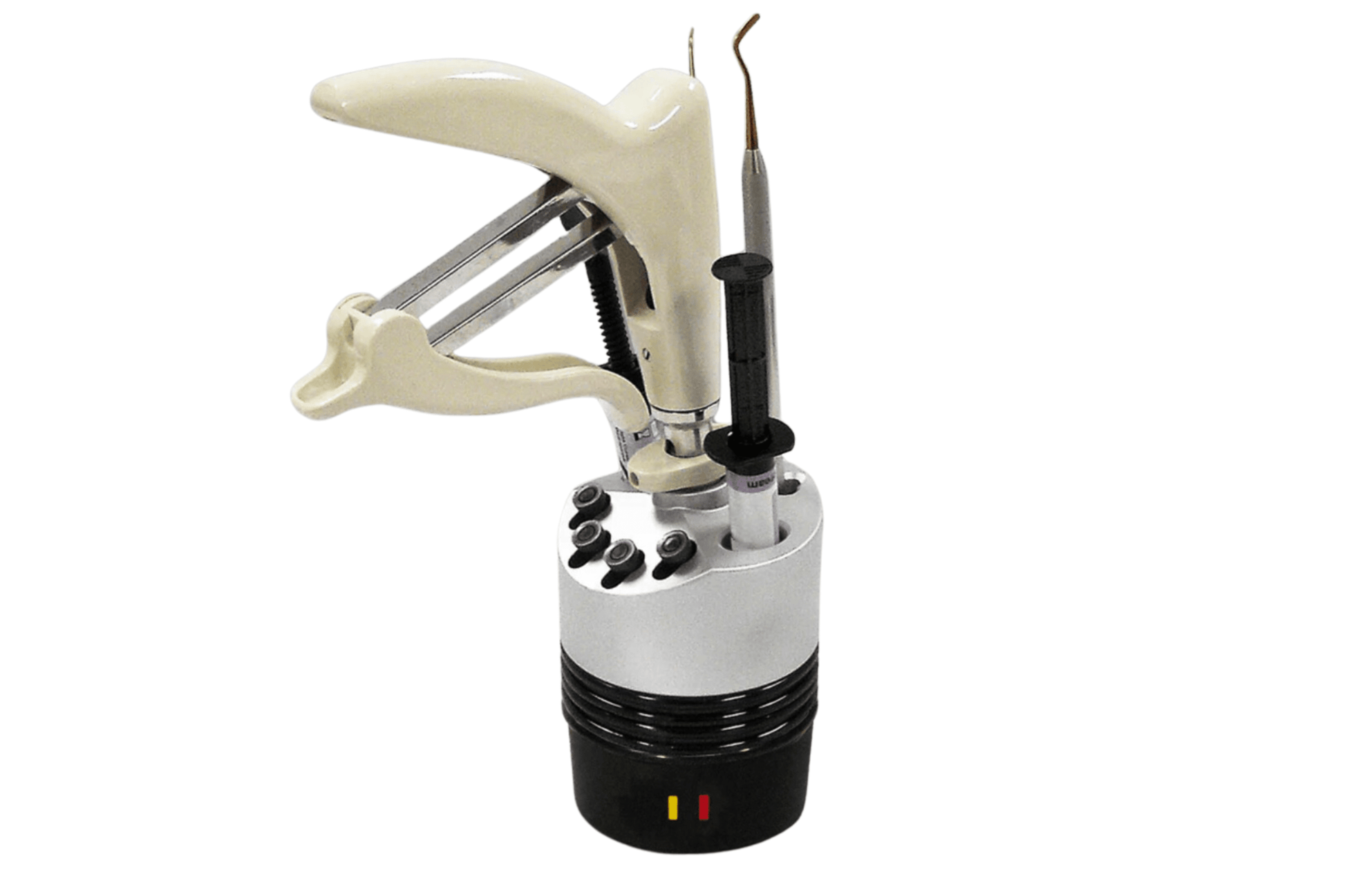 Mit Platz für Spritzen, Instrumente, Pistole und Kapseln.