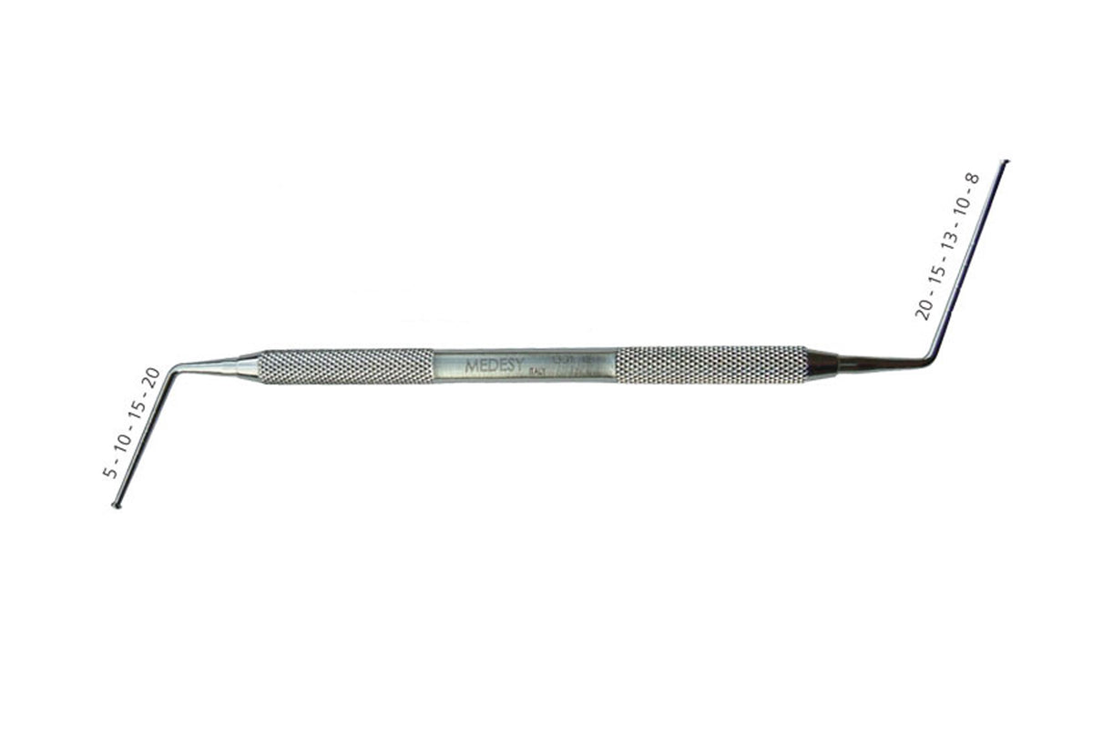 Instrument zum Messen der Tiefe von Knochentunneln. Hat registrierte Maßeinheiten.