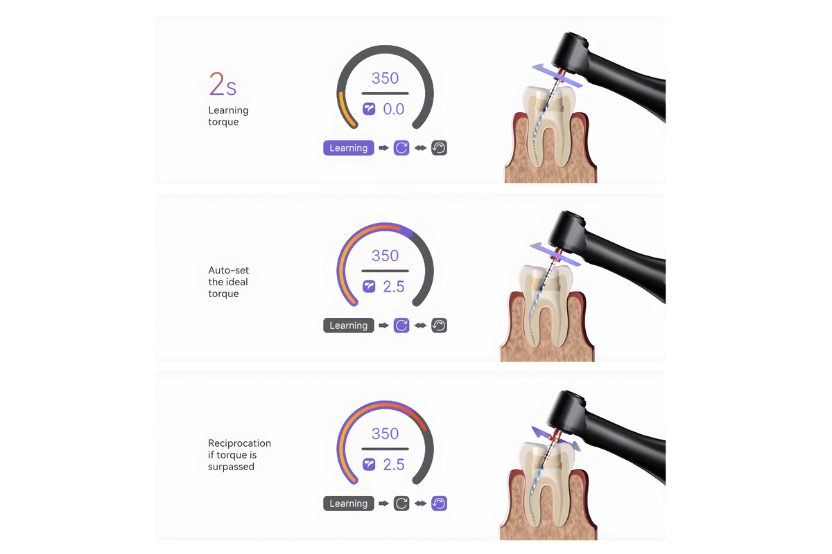 The GT Pro is an advanced endodontic motor system featuring adaptive TorqueSense™ Pro technology, which adjusts torque and speed in real time to reduce file fracture.