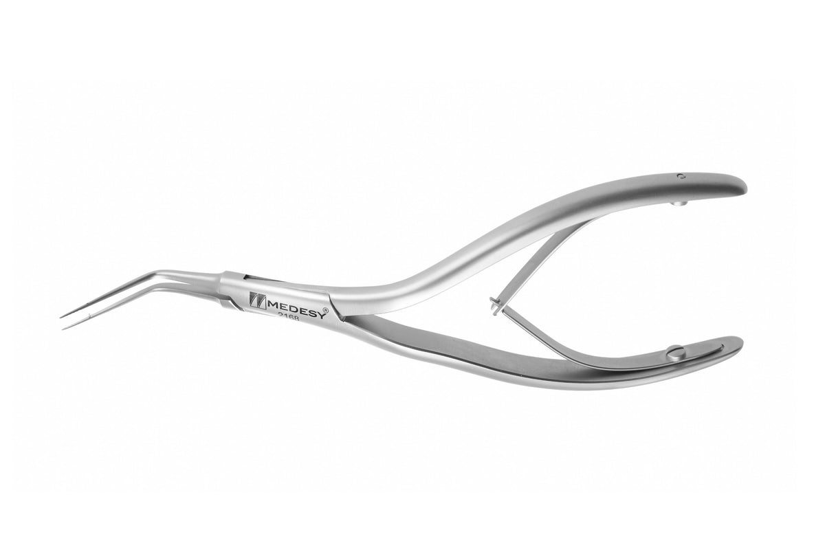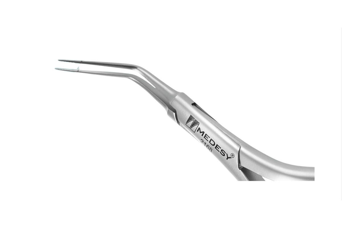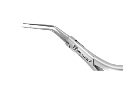 30 Grad vom Griff abgewinkelt. Die Spitze ist 20 mm lang und hat einen Durchmesser von 0,8 mm.