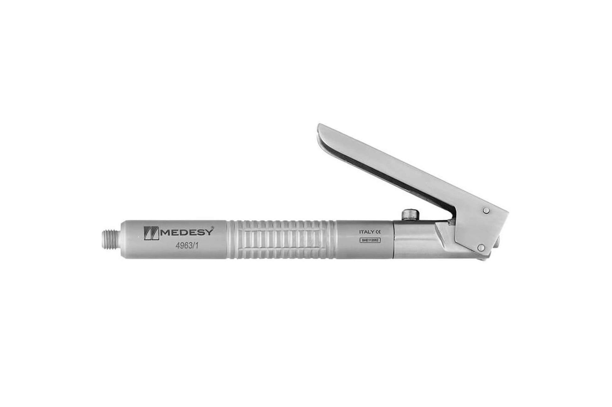 Edelstahlspritze mit Fingergriff.