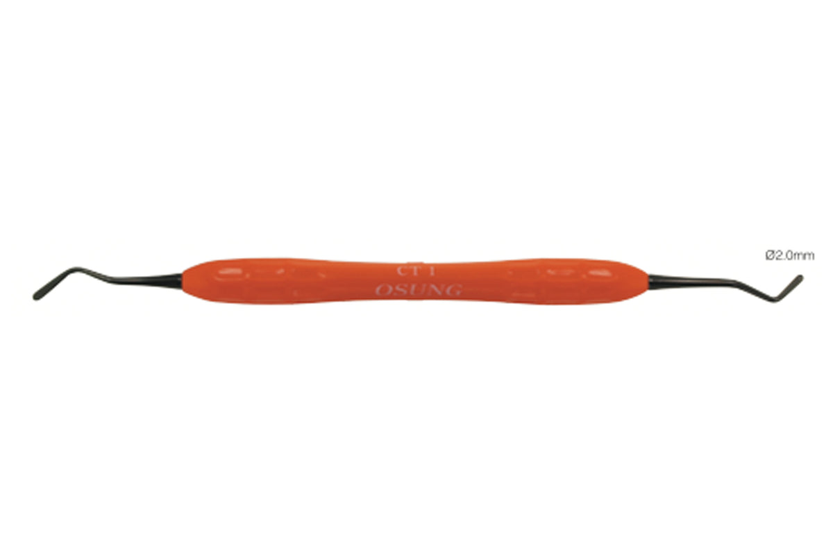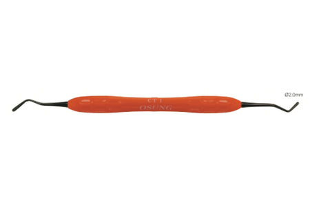 Orangefarbener Silikongriff und titanbeschichtete mattschwarze Oberfläche.