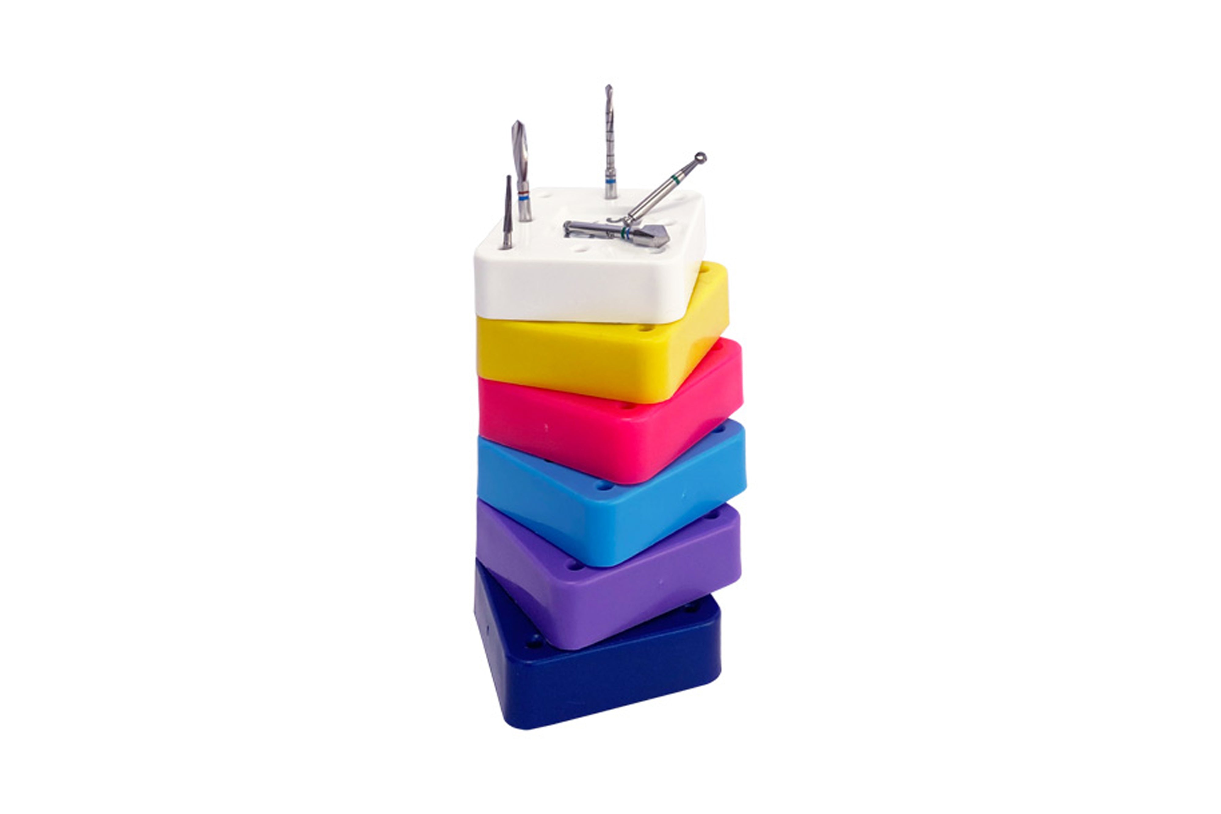 Ein eingebauter Magnet sorgt dafür, dass sowohl FG- als auch VS-Bohrer an ihrem Platz bleiben. Durchgehende „Abflusslöcher“ verhindern Rostbildung an den Bohrern.