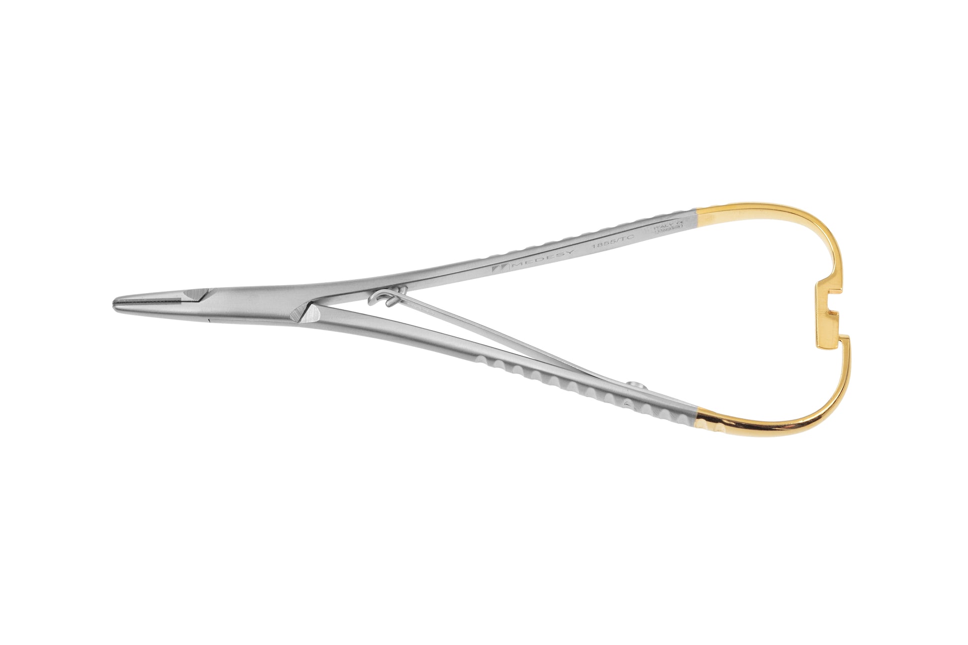 Klassischer gerader Mathieu-Nadelhalter mit Innenverriegelung und Hartmetallbacken.
