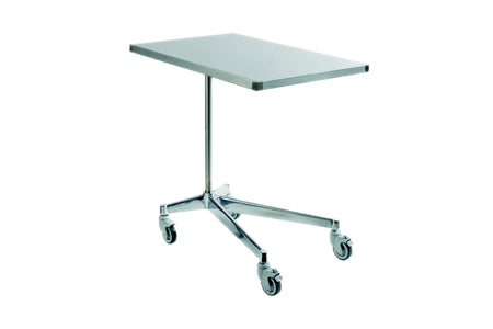 - Der Tisch kann bequem seitlich an den Patientenstuhl herangefahren werden. Die Tischplatte misst 73 x 48 cm, die Höhenverstellung beträgt 75 - 117 cm, zusätzlich besteht die Möglichkeit, die Räder zu arretieren. Gewicht 13 kg.