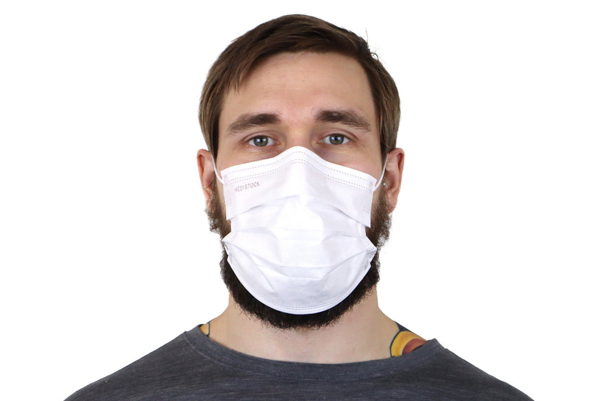 3-lagig, LATEXFREI und hypoallergen. EN 14683, 98,96 % Filtration und Spritzwasserschutz.