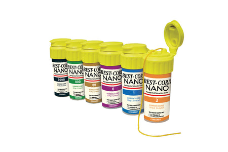 Nano Cords sind hochwertige, geflochtene Abdruckdrähte für präzise und detaillierte Zahnabdrücke. Diese Packung enthält 2,5 Meter Faden und bietet Ihnen ausreichend Material für mehrere Behandlungen. Nano Cords sind bekannt für ihre Langlebigkeit und Robustheit und stellen sicher, dass sie während des Gebrauchs nicht brechen oder auseinanderfallen. Sie sind zudem einfach zu handhaben und zu verarbeiten und somit die ideale Wahl für jeden Zahnarzt.