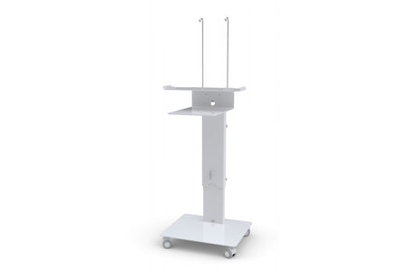 Höhenverstellbar. 3 eingebaute Steckdosen, 2 Aufhängungen für Wasserbeutel, extra weiche „Reifen“ an den Rädern, davon 2 feststellbar, große Bodenablage für den Fußschalter.