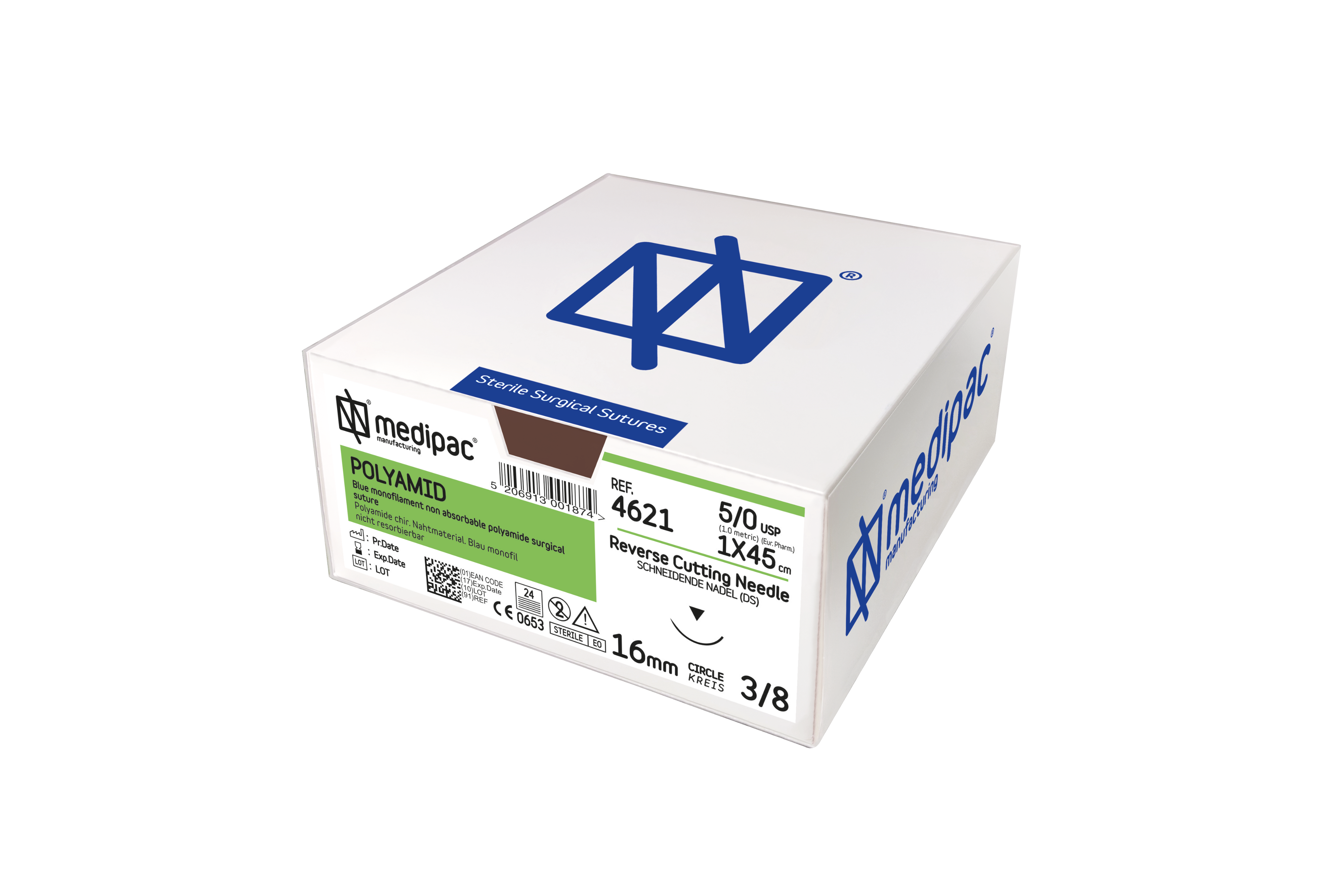 Nicht resorbierbares Nahtmaterial aus Polyamid (Nylon)-Monofilament. Bekannt für ihre Stärke und Haltbarkeit, sind diese Nähte ein fester Bestandteil jeder Zahnarztpraxis. Die blaue Farbe verbessert die Sichtbarkeit während des Eingriffs. Sie sind nicht resorbierbar, d. h. sie lösen sich nicht auf oder werden vom Körper absorbiert und müssen von einem Zahnarzt entfernt werden. Diese Nähte eignen sich ideal für eine Vielzahl von zahnchirurgischen Eingriffen und sorgen für einen sicheren Wundverschluss bei minimaler Gewebereaktion.