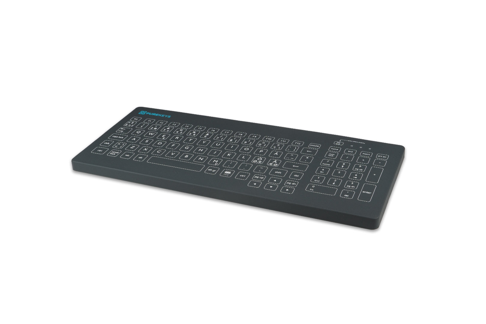 Hygienische Klinik- und mechanische Tastatur (mechanische Tasten) mit Silikonoberfläche, die leicht mit Desinfektionstüchern/-flüssigkeit gereinigt werden kann.