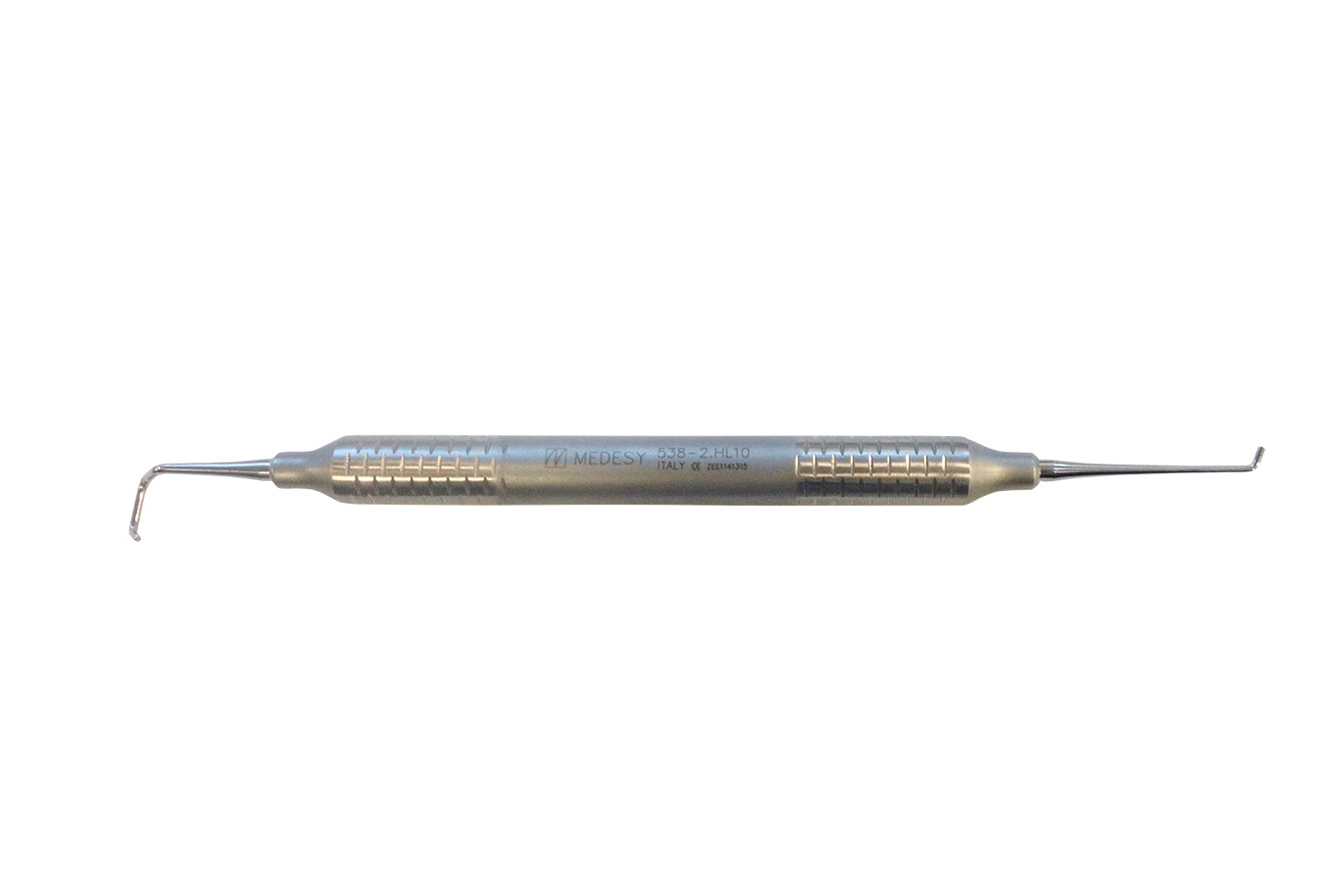 Zur Kondensation im apikalen Delta. Ein Ende des Instruments ist für den palatinalen Zugang abgewinkelt.