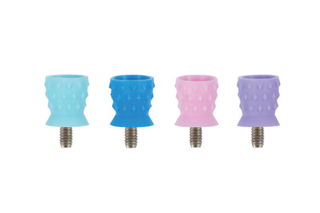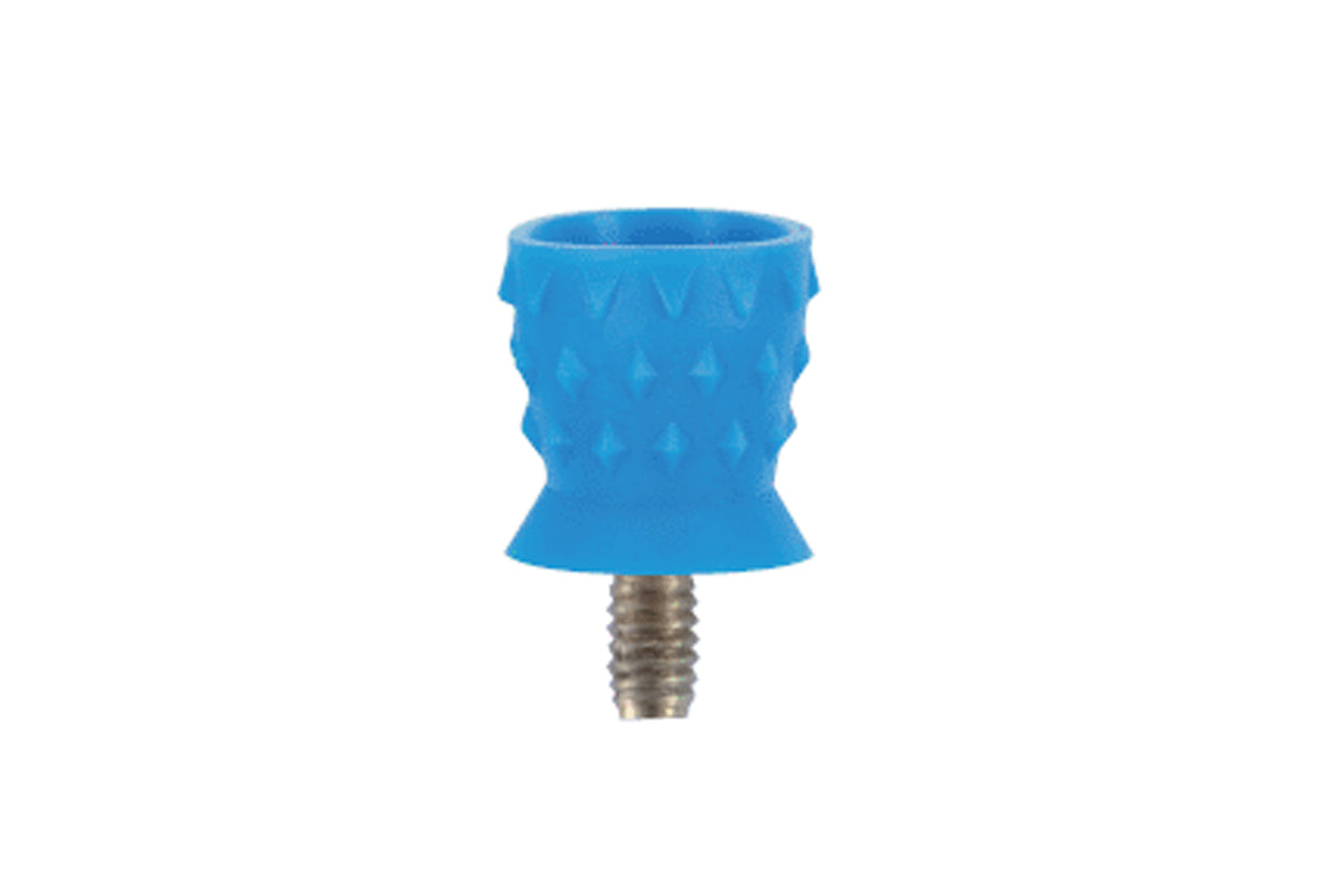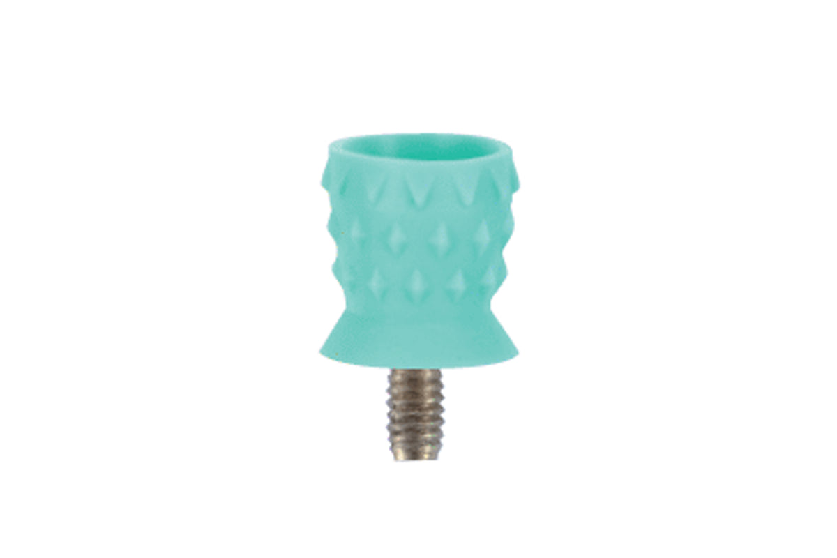 Einweg-Polierkelche zum Einschrauben mit Turbinenlamellen innen und Tupfen außen.