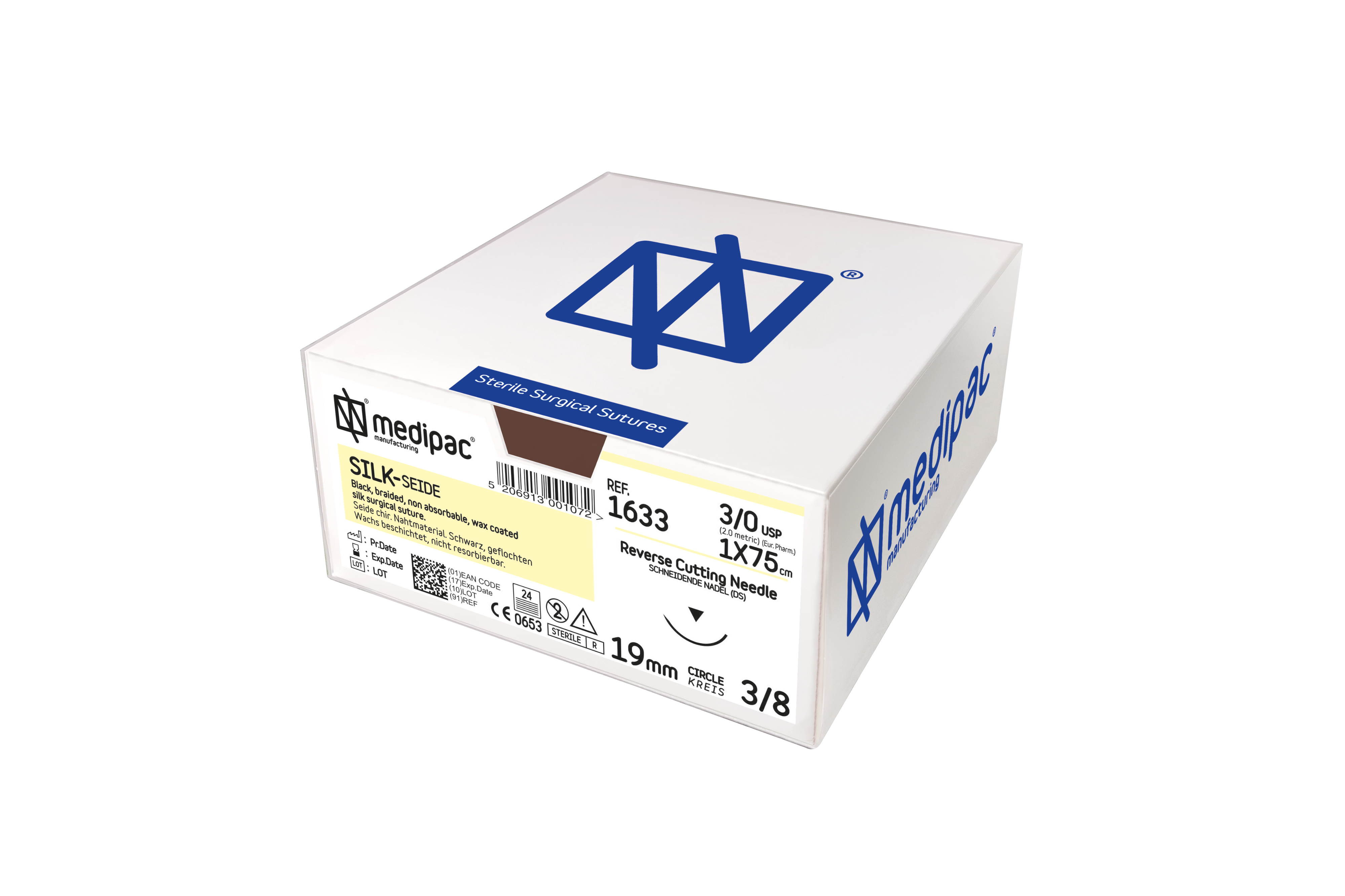 Klassisches Seidennahtmaterial besteht aus nicht resorbierbaren natürlichen Proteinfasern, die in eine entsprechende Anzahl von Seidenfasern eingewebt sind. Das Nahtmaterial ist mit Silikon und Paraffin beschichtet, um die Oberfläche weicher zu machen.