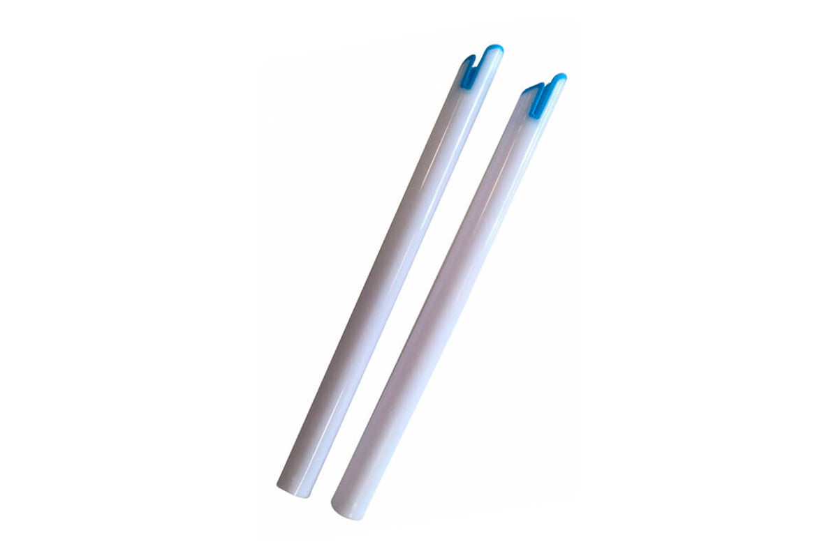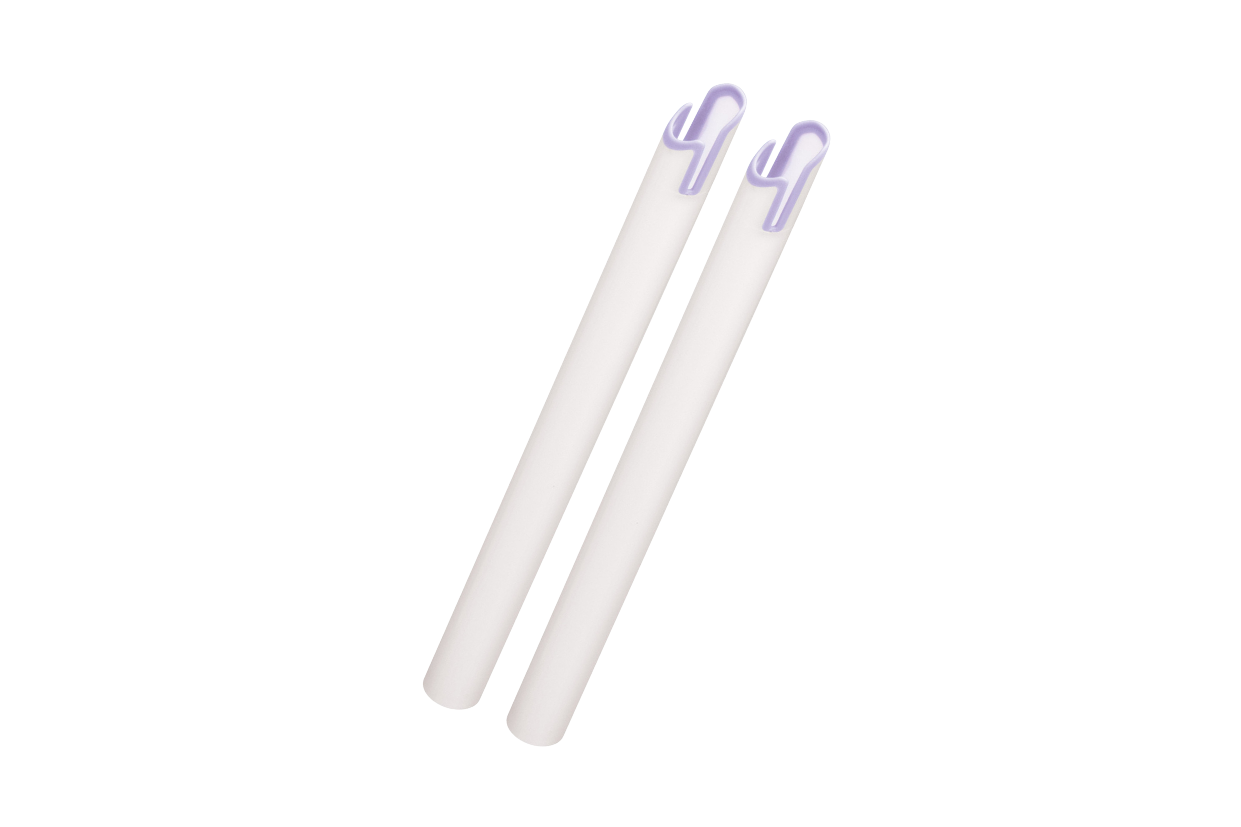 Saugteil mit weichen Kanten und Schlitz, dadurch wird ein Verkleben mit der Schleimhaut des Patienten vermieden und gleichzeitig wird durch die weiche Gummikante der Komfort für den Patienten erhöht.
