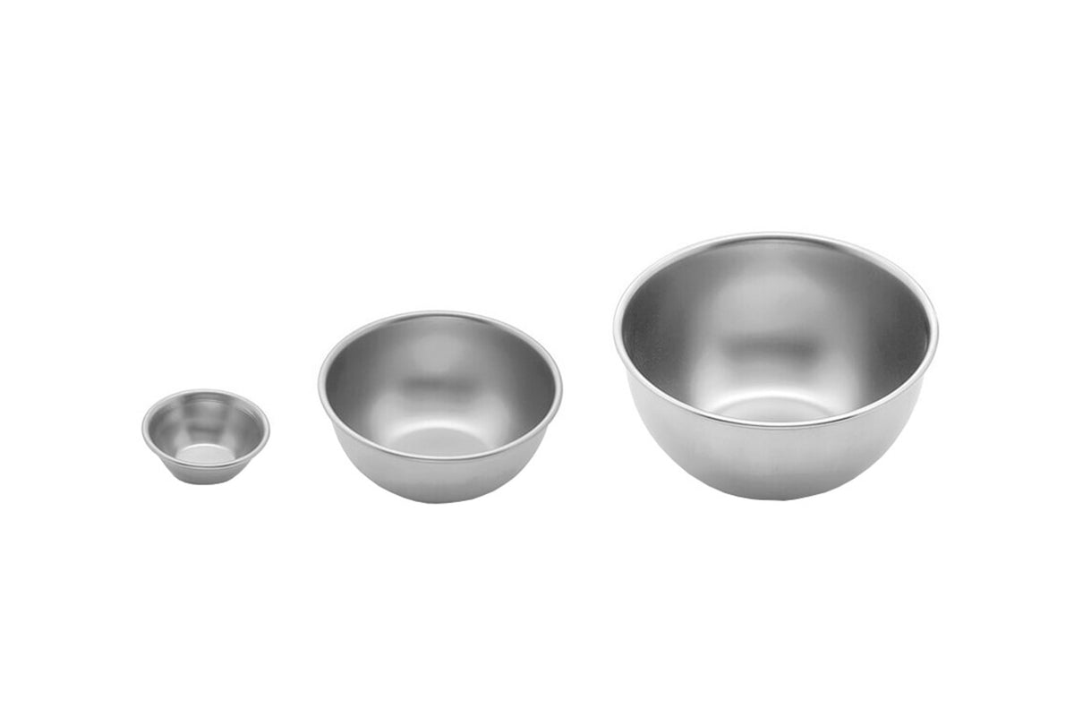 Edelstahlschüssel, geeignet zur Aufbewahrung von Spülwasser.